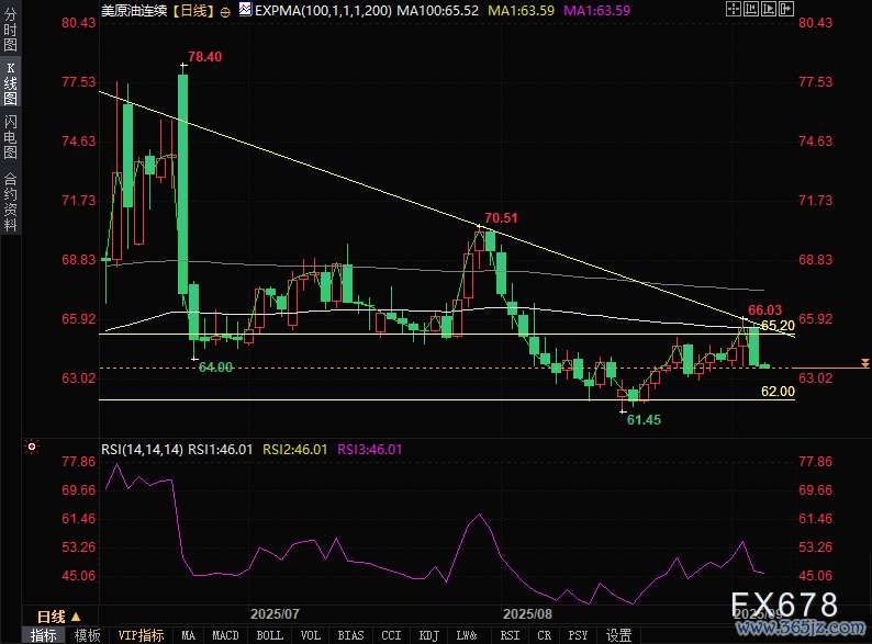 上方阻力:65.50-65.55好意思元(100日指数出动平均线隔邻)是当今最近的阻力位。若能有用毒害,可能测试67.00-67.50好意思元乃至更高。